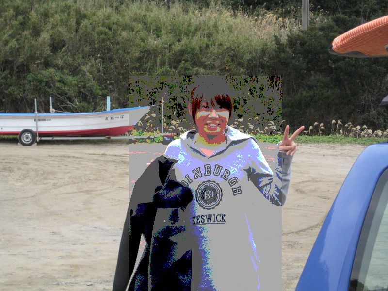 P君のヘンな波待ち。
